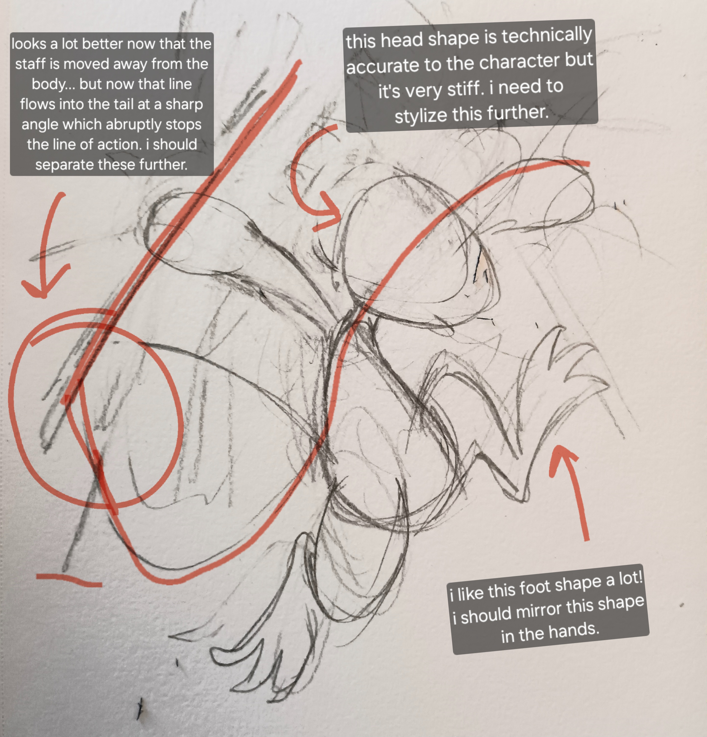 there are plenty of anatomical "errors" here. like, the haunches in this sketch make NO sense - if an animal's leg rotated that far, it would be an indication of a serious medical issue! but cartoons are abstract art. i'm not drawing for accuracy, i'm drawing to evoke energy and motion. the legs read well; therefore, i will keep them.