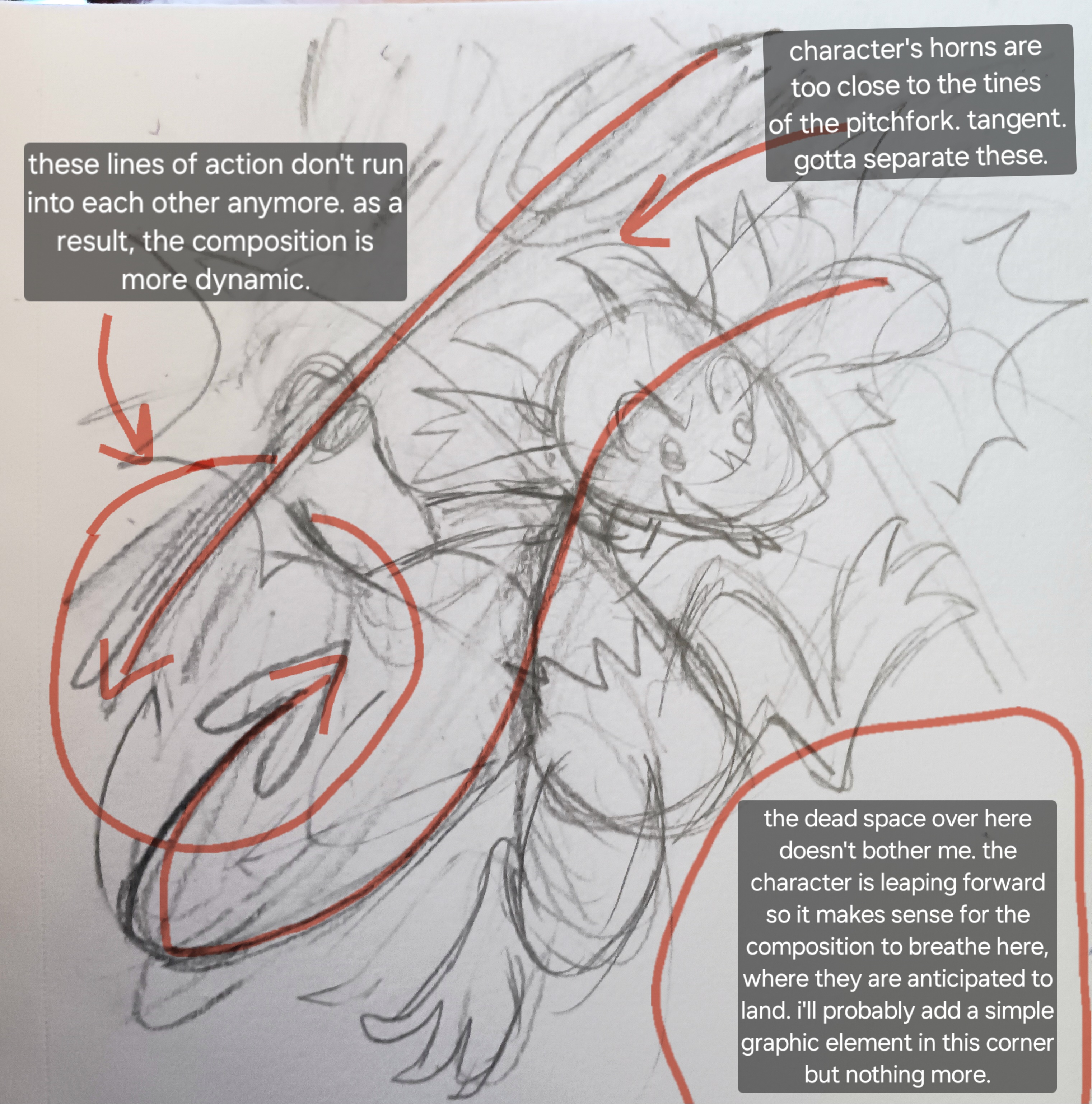 at this point i stopped, took a step back, and considered the composition of the sketch. here are some of the strengths and weaknesses i identified.