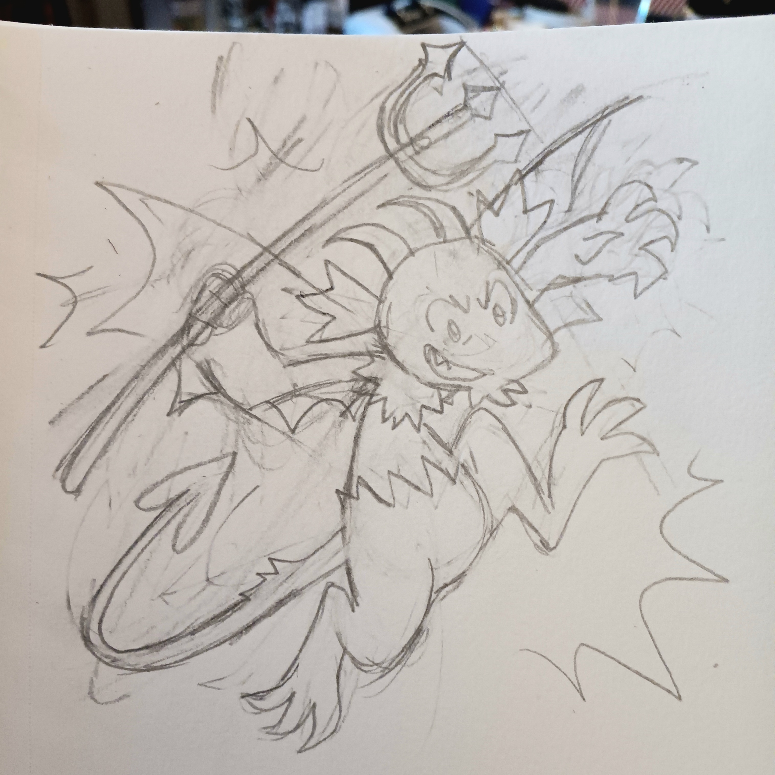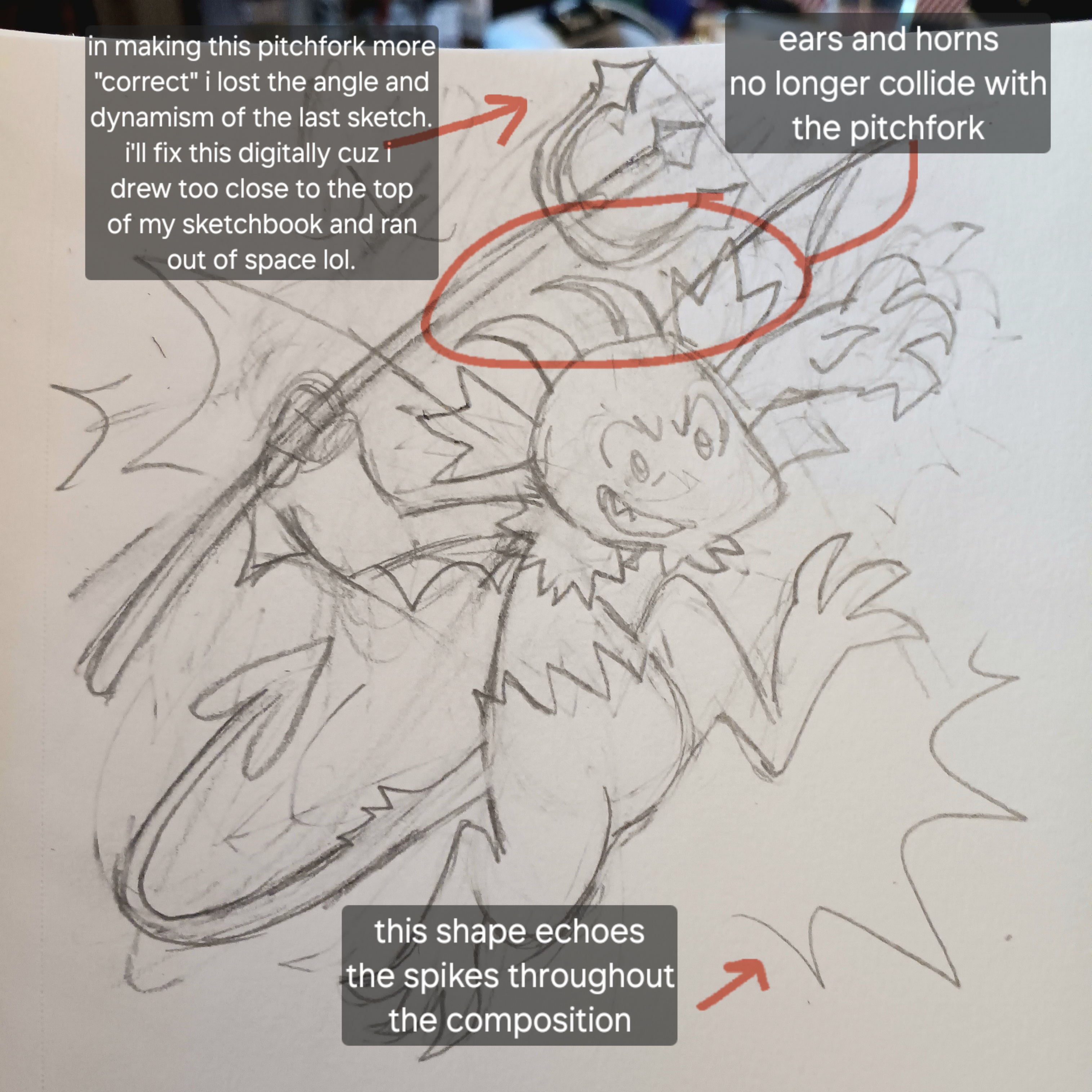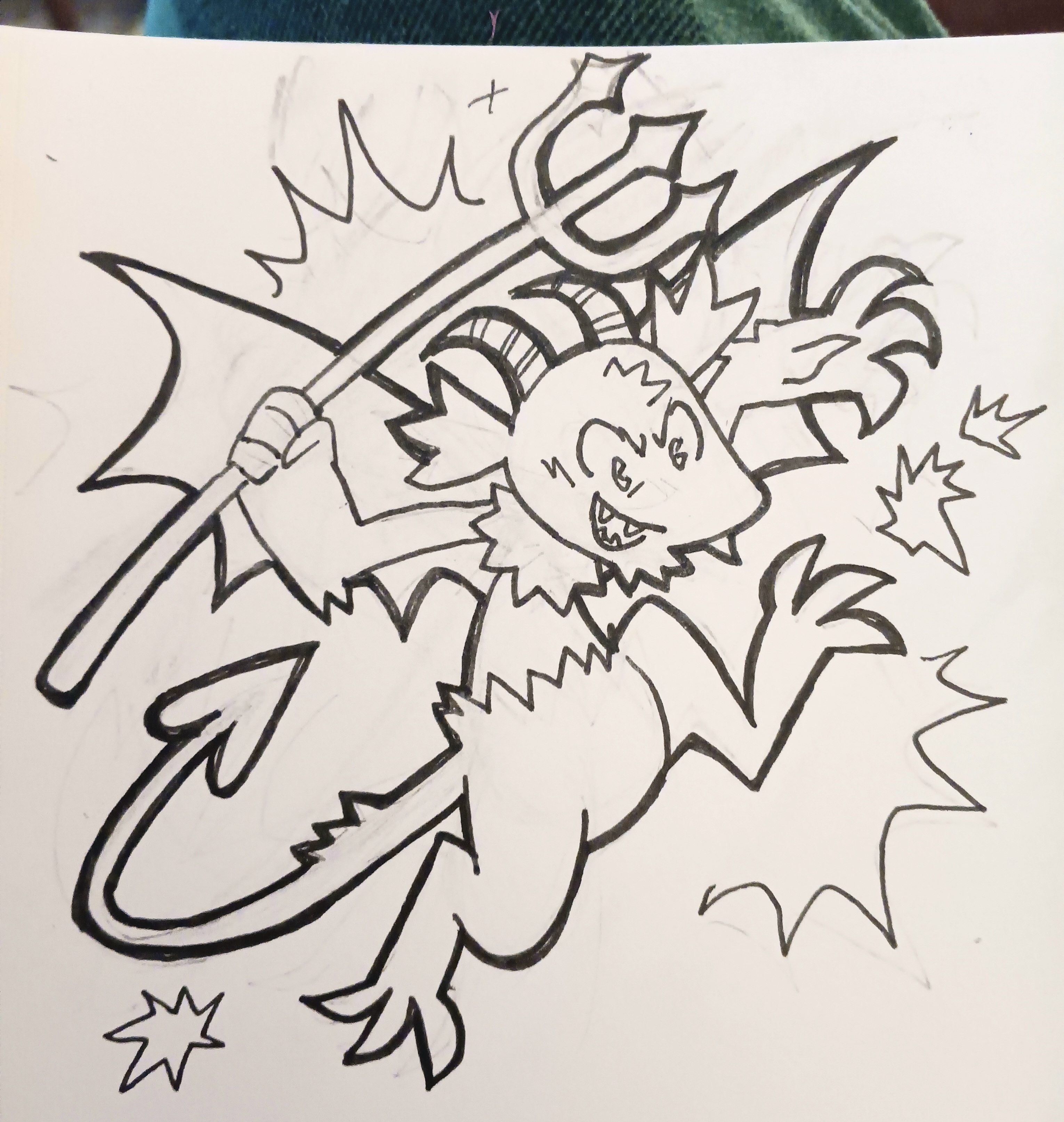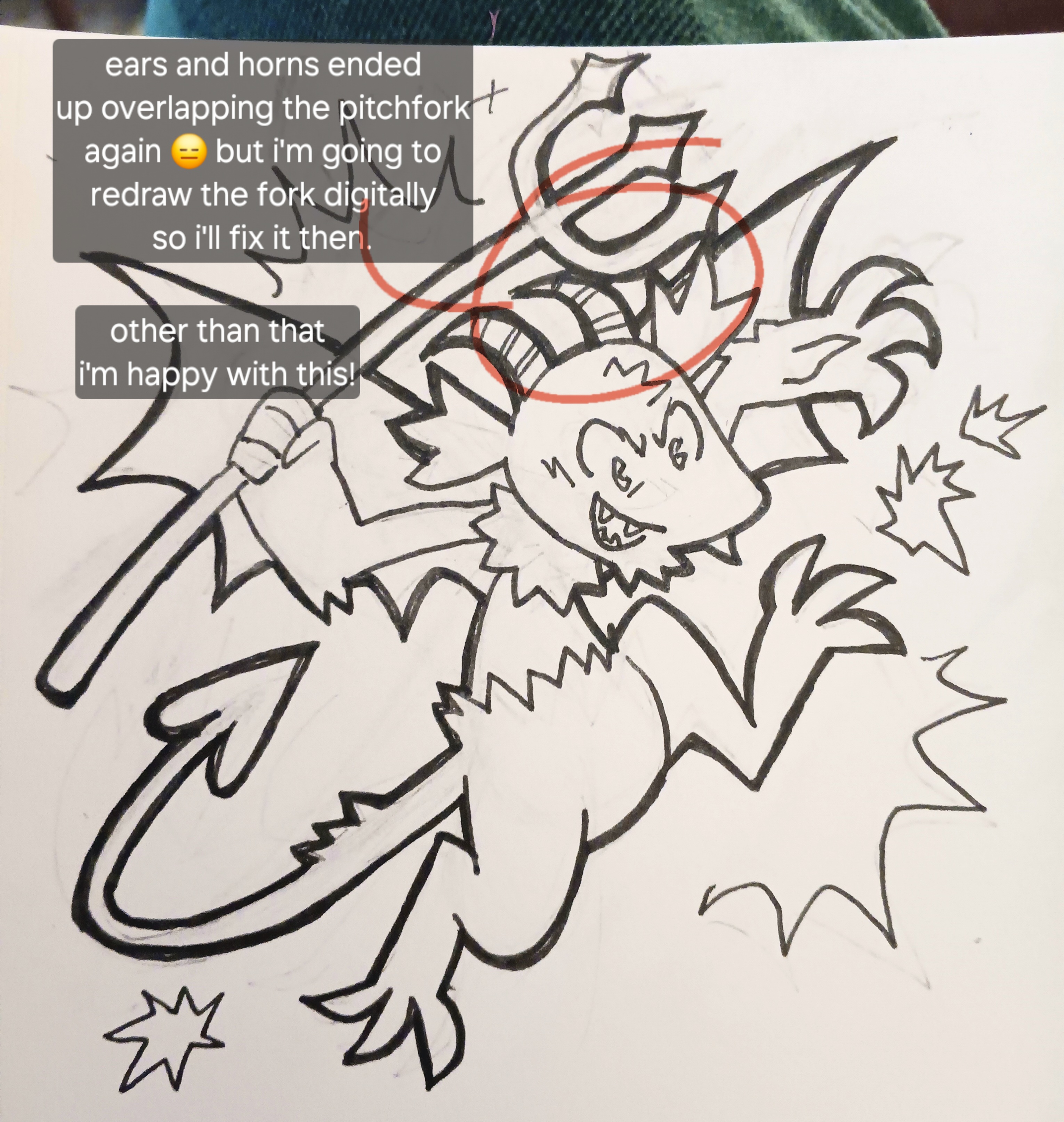 not bad..... buuuut that pitchfork looks like crap from a butt AND it ended up crowding out the other elements i was so careful to fix!!! if i had taken the time to tie down the drawing, this wouldn't have happened. that's what clip studio paint is for i guess.